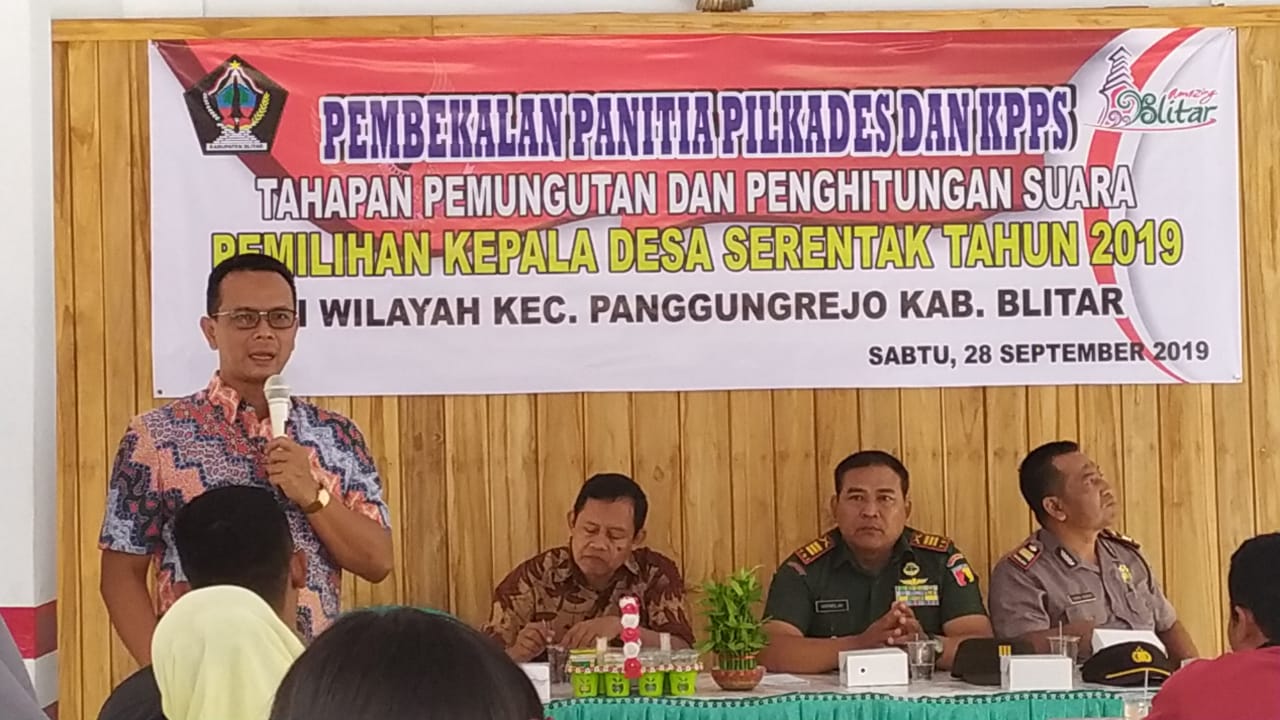 Panggungrejo, Hari Sabtu, tanggal 28 September 2019 diadakan Pembekalan Panitia Pilkades pada tahapan pemungutan dan penghitungan suara dengan Narasumber Bapak Kabag Pemerintahan, Bambang Dwi Purwanto, S.STP, M.Si. Peserta pembekalan Semua panitia pilkades dari enam Desa yaitu Desa Bumiayu, Panggungasri, Sumberagung, Kalitengah, Kaligambir, Serang. Acara berjalan tertib, lancar sampai akhir.