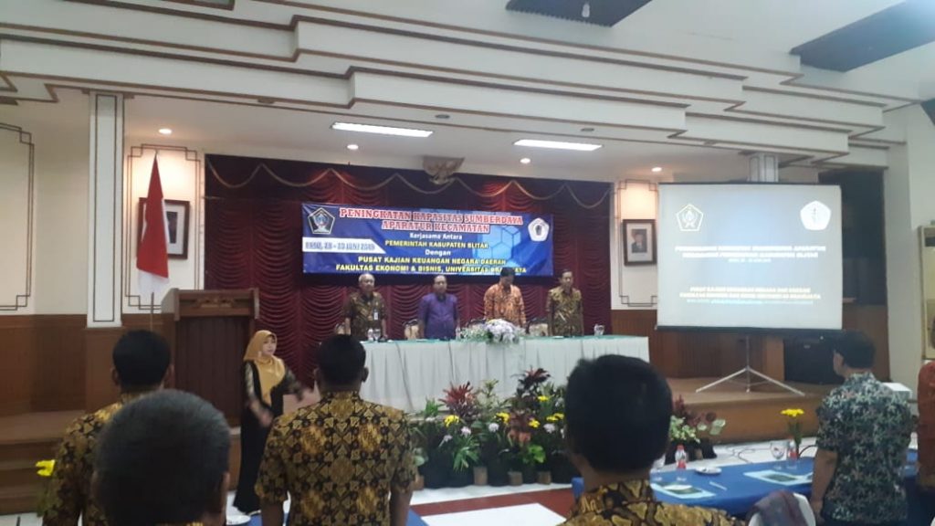 Batu-Pemerintah Kantor Kecamatan Panggungrejo melaksanakan kegiatan Bimtek Peningkatan Kapasitas Sumberdaya Aparatur Kecamatan di Hotel Puranama Kota Batu pada Jum’at (28/6/2019). Kegiatan ini bekerja sama dengan PK2ND Universitas Brawijaya Malang diikuti bersama oleh 3 (tiga) Kecamatan yaitu Kecamatan Panggungrejo, Kesamben dan Wonotirto. Acara dimulai pada pukul 19.00 WIB dengan diawali sambutan oleh Bapak Susilo selaku Kepala PK2ND Fakultas Ekonomi dan Bisnis Universitas Brawijaya. Pemateri oleh Bapak Siswidiyanto tentang Pelayanan Publik dan Ibu Sayekti Pribadiningtyas selaku motivator dan Ahli Psikologis. Kegiatan ini berjalan lancar dan tertib sampai selesai. (Agp-)
