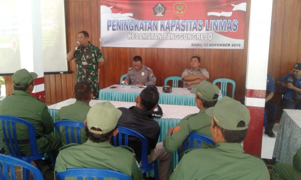 Panggungrejo, Kecamatan Panggungrejo mengadakan Peningkatan Kapasitas Anggota Linmas pada Rabu, 13 Nopember 2019 di Pendopo Kecamatan Pangggungrejo. Kegiatan ini di buka oleh Bapak Kasi Trantib yang mewakili Bapak Camat. Peserta dari 10 (sepuluh) Desa masing-masing mengirimkan 3 (tiga) anggota Linmas. Narasumber berasal dari Bapak Dan Ramil 0808/18, Bapak Kapolsek Panggungrejo, dan Bapak Tedi Prasojo dari Damkar Satpol PP Kabupaten Blitar. Kegiatan ini dimulai dari pemaparan Narasumber dilanjutkan di halaman Kecamatan Panggungrejo untuk prakteknya dan berjalan lancar sampai akhir kegiatan.